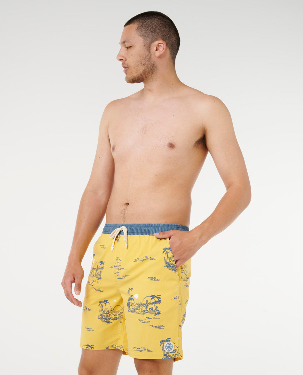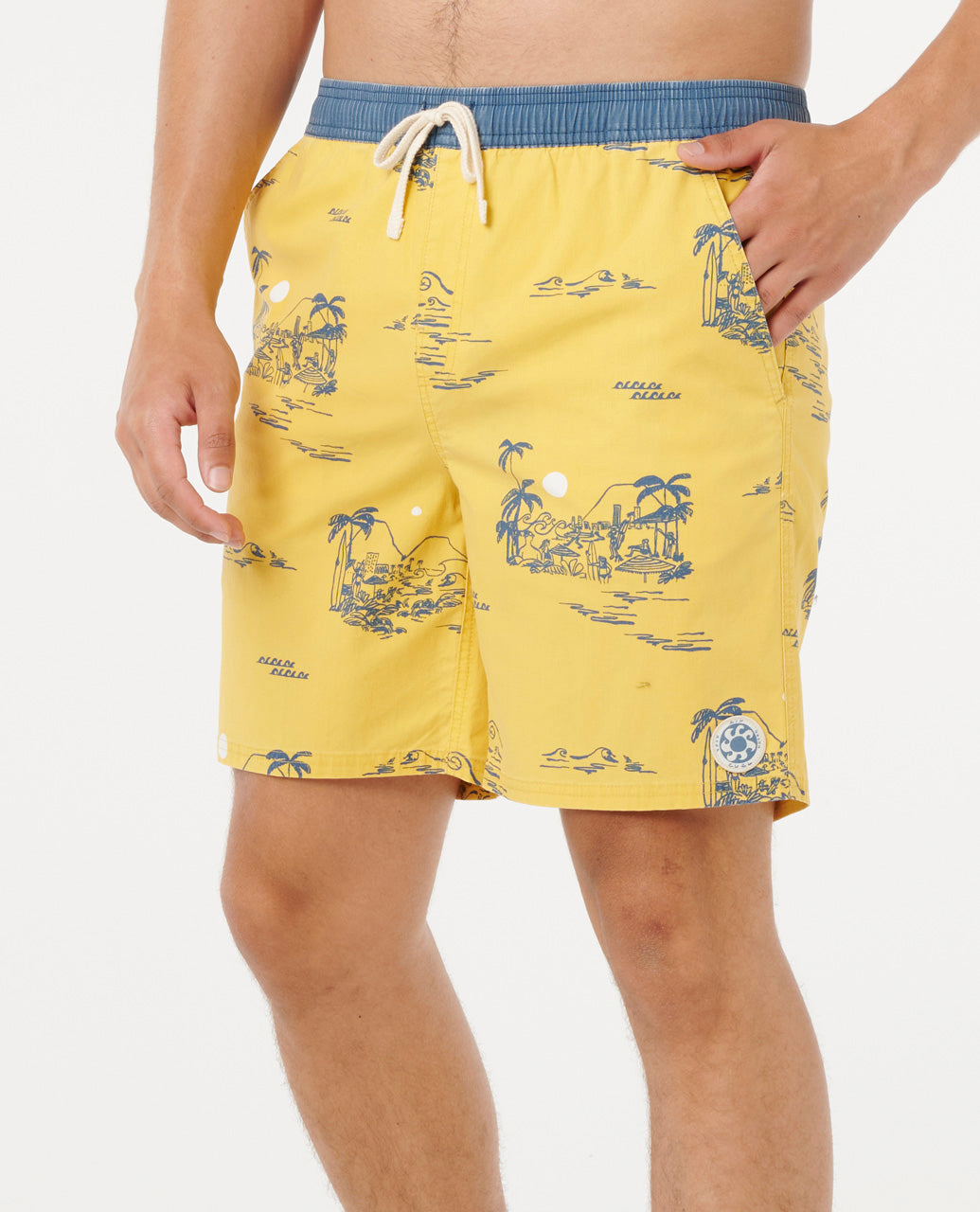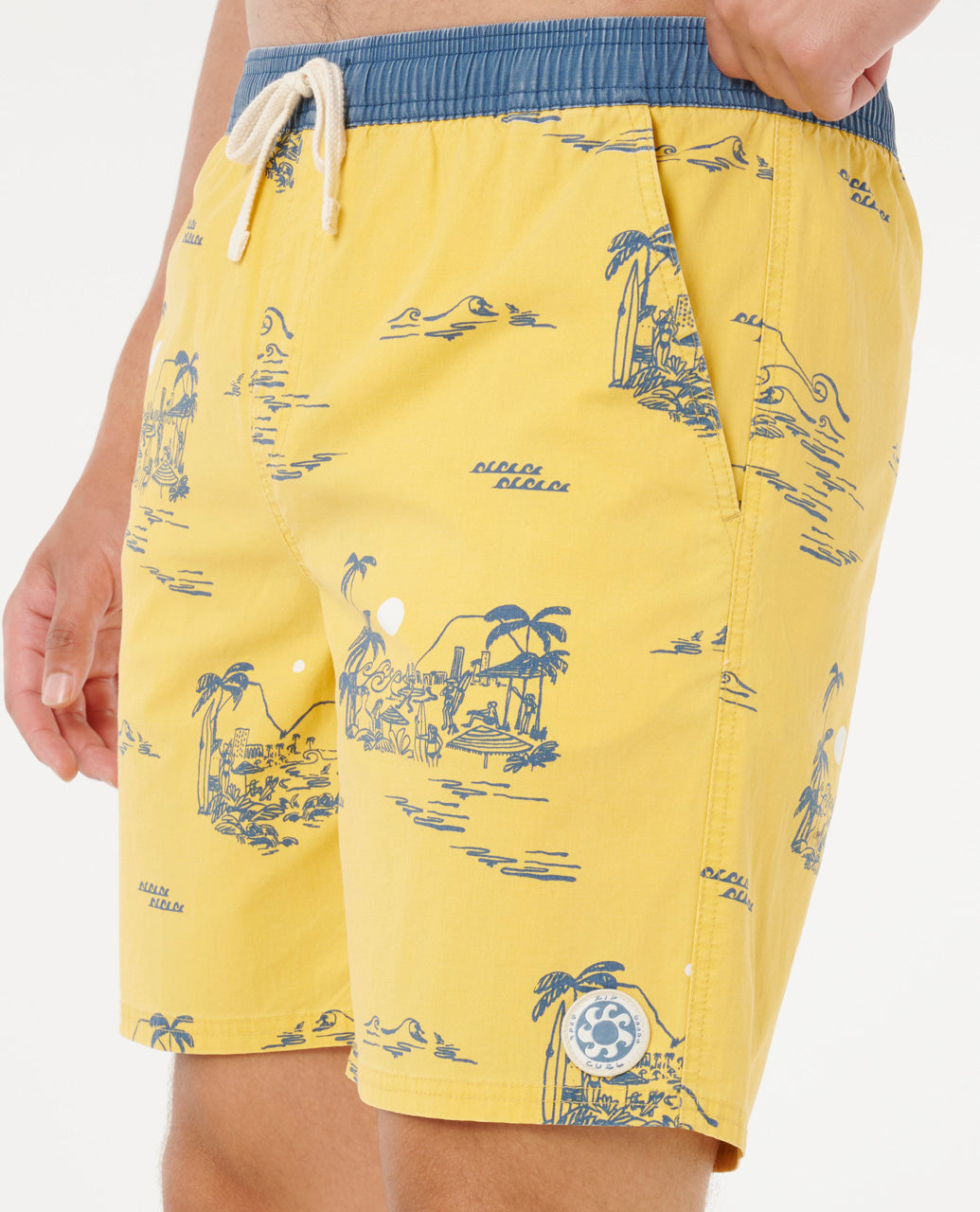 • Contrast waist band and back pocket
