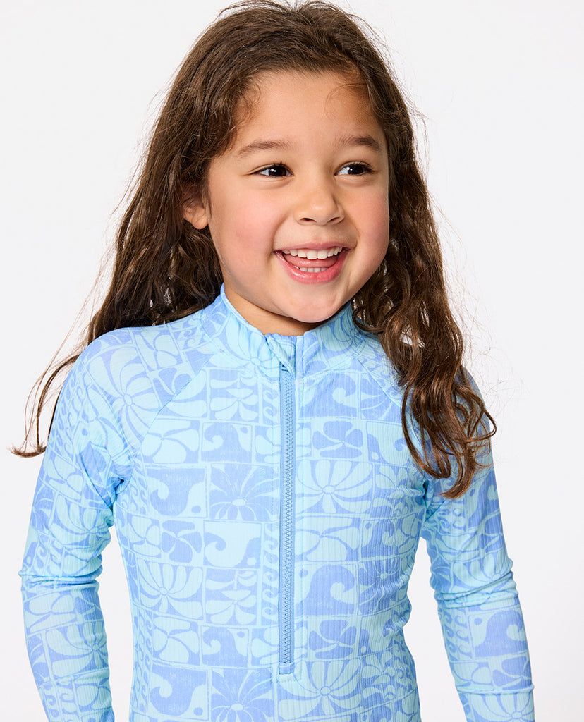 | Style Code : 13NJRV AOTS OCEANIC 2 PIECE SET -GIRL Features : WARPKNIT LYCRA® EXTRA LIFE™ Standard fit • UPF 50+UV sun protection rash vest • Chlorine friendly • Xtralife lycra • Yardage print panels • Front print • Woven clamp |